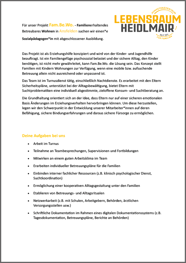 FREIZEITBETREUER:IN/PÄDAGOG:IN Weisskirchen VS, Krankenstandsvertretung ab Oktober mit möglicher Übernahme, 25 Wochenstunden