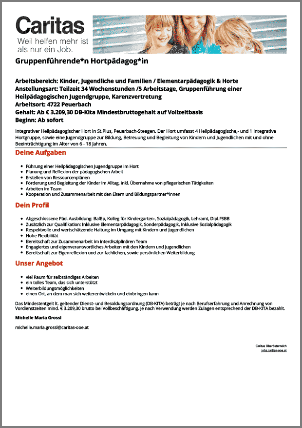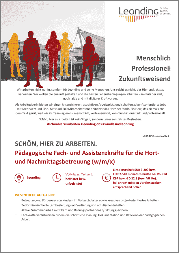 Nachmittagsbetreuung Leonding, Voll bzw. Teilzeit,