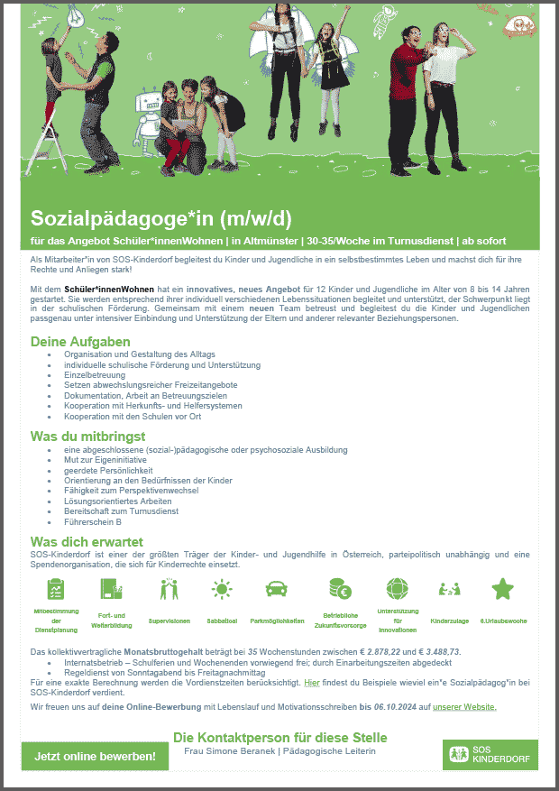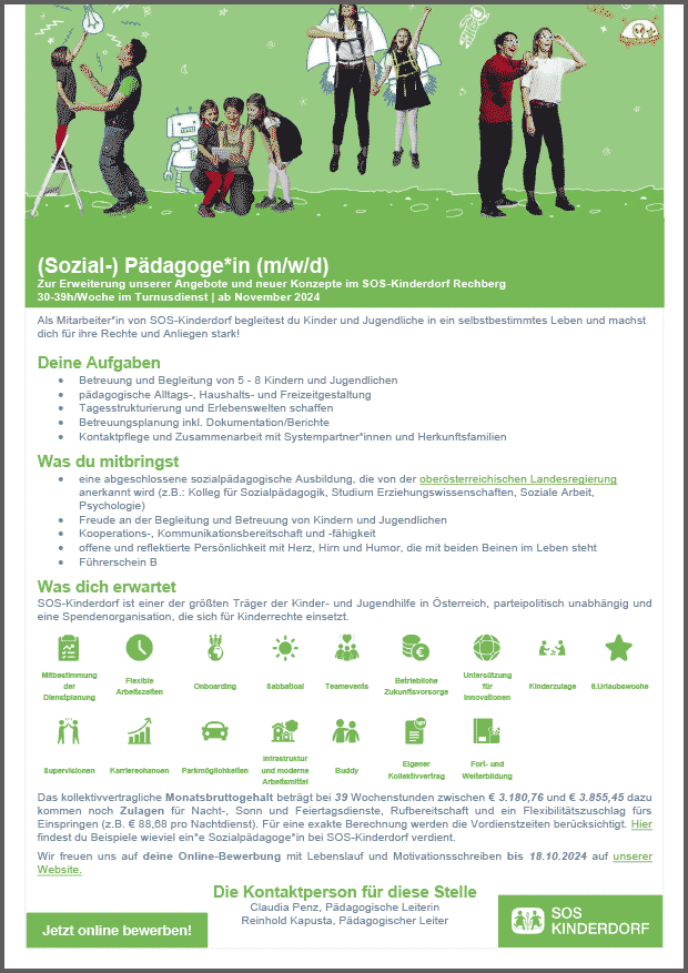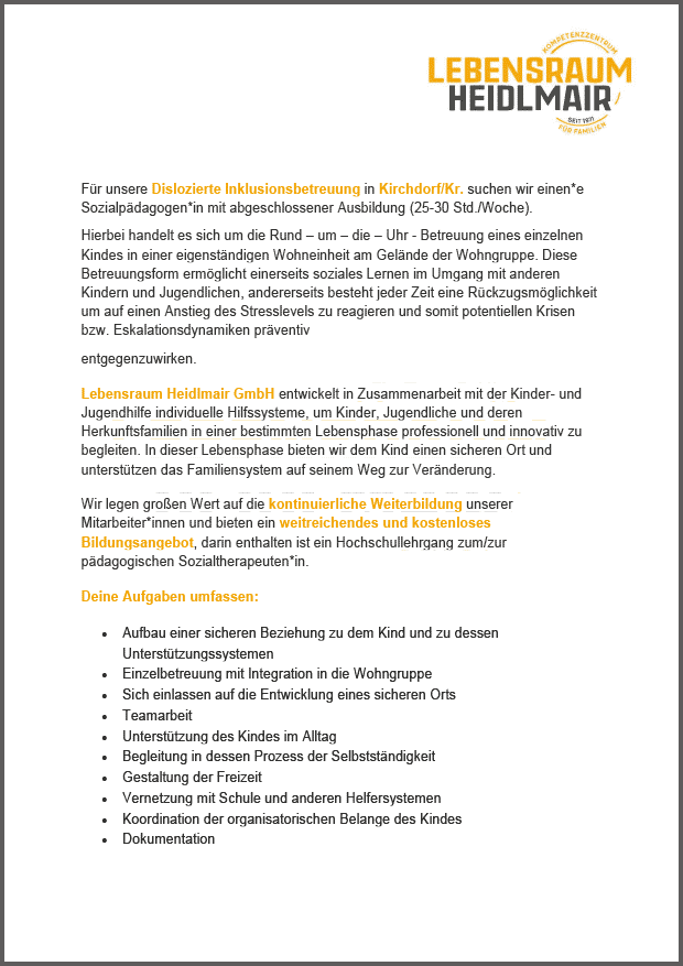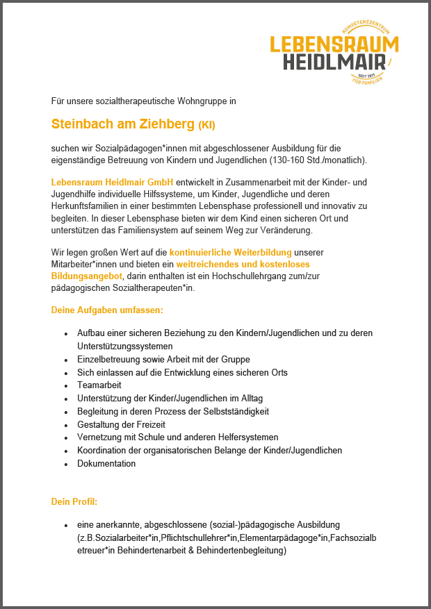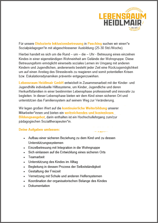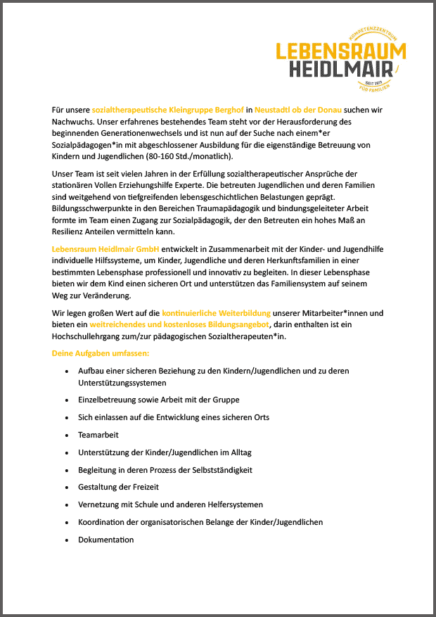 Sozialpädagogen*in sozialtherapeutische Kleingruppe Berghof in Neustadtl ob der Donau, Vollzeitanstellung