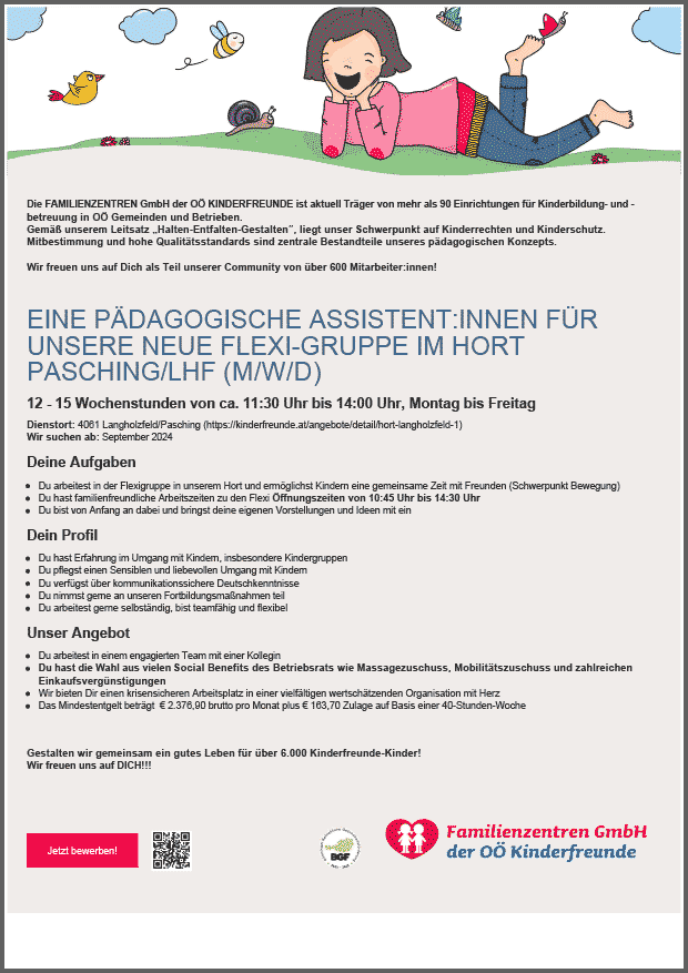 Hort Langholzfeld/Pasching, 12 - 15 Wochenstunden