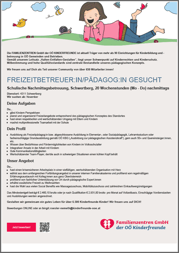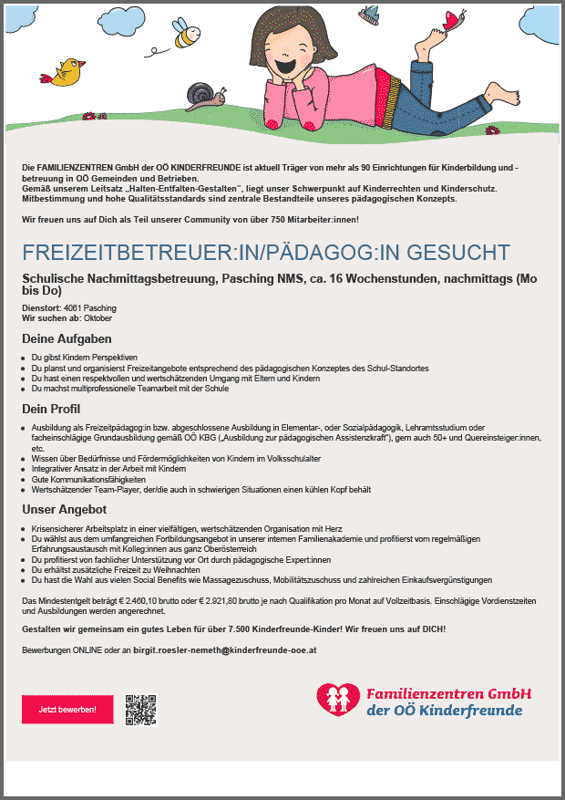 LEITUNG SCHULISCHE NACHMITTAGSBETREUUNG Schulische Nachmittagsbetreuung, Pasching NMS, 18 Wochenstunden