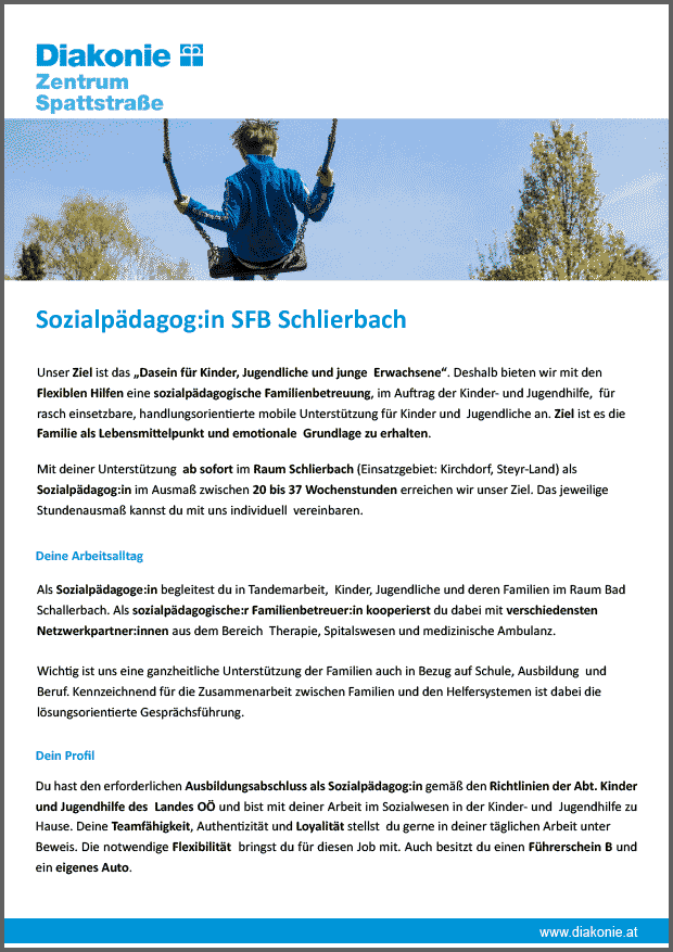 sozialpädagogische Familienbetreuung Raum Schlierbach, 20 bis 37 Wochenstunden