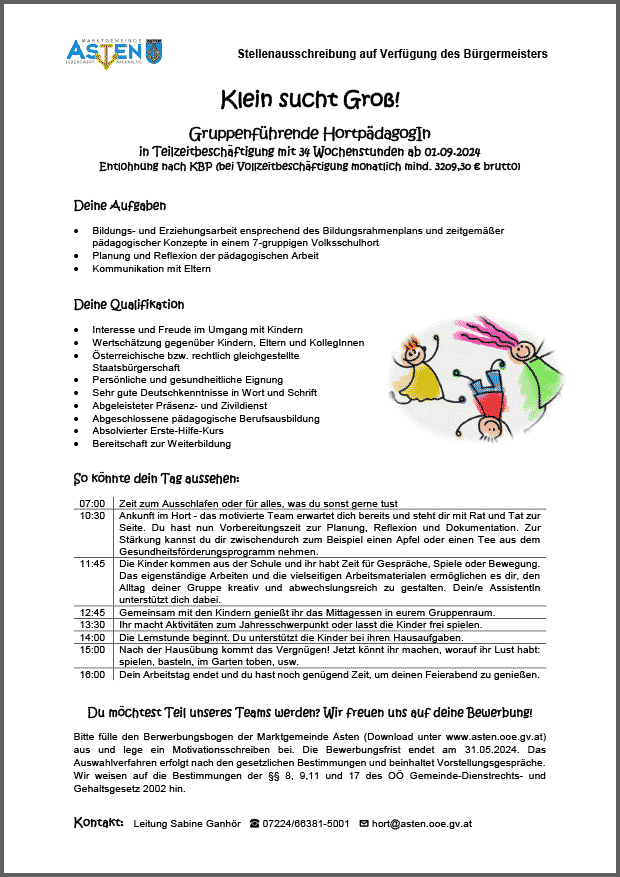 Asten, 34 Wochenstunden
