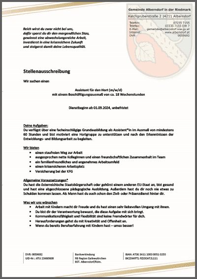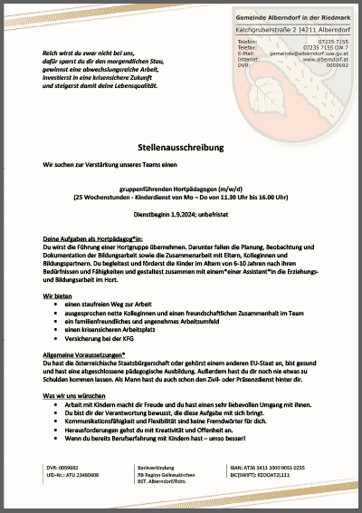 Alberndorf, 25 Wochenstunden