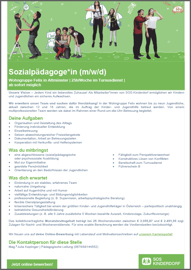 Wohngruppe Felix in Altmünster | 25h/Woche im Turnusdienst