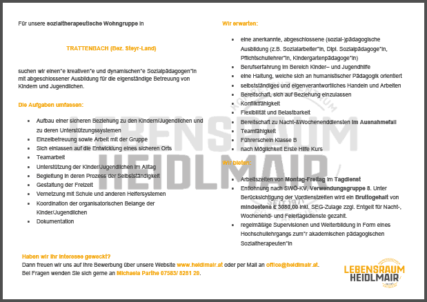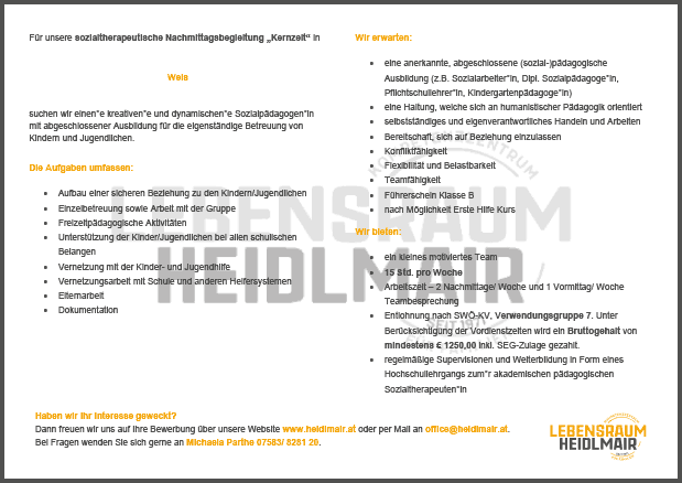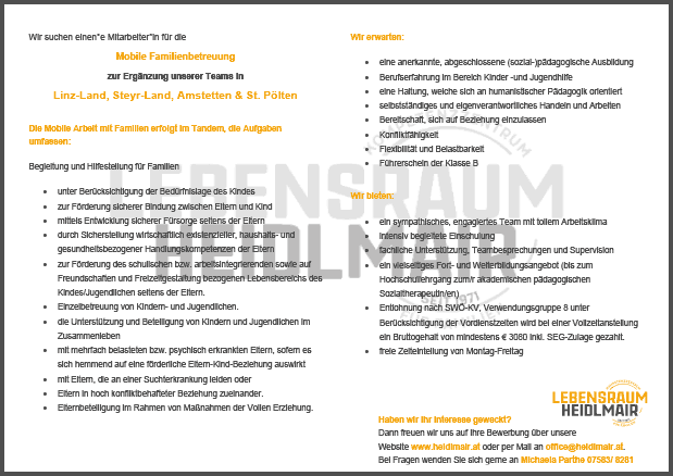 Lebensraum Heidlmair GmbH, 15 Std. pro Woche