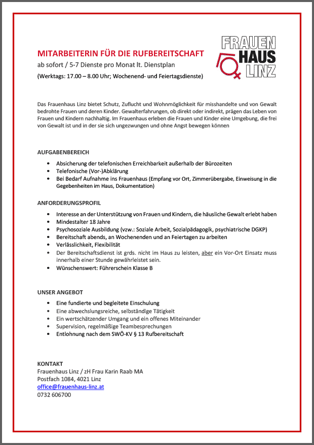 Frauenhaus Linz, 5-7 Dienste pro Monat