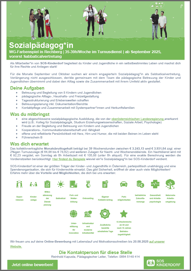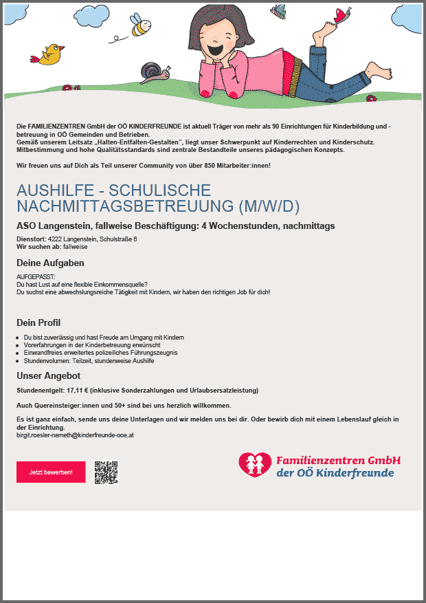 AUSHILFE - SCHULISCHE NACHMITTAGSBETREUUNG (M/W/D) ASO Langenstein, fallweise Beschäftigung: 4 Wochenstunden