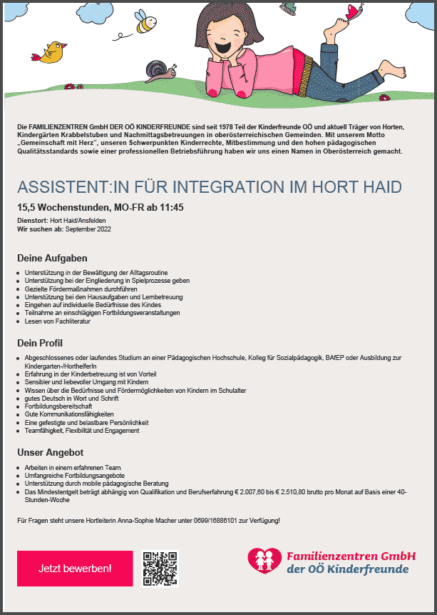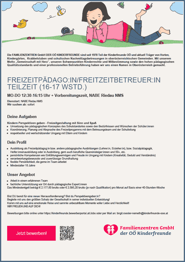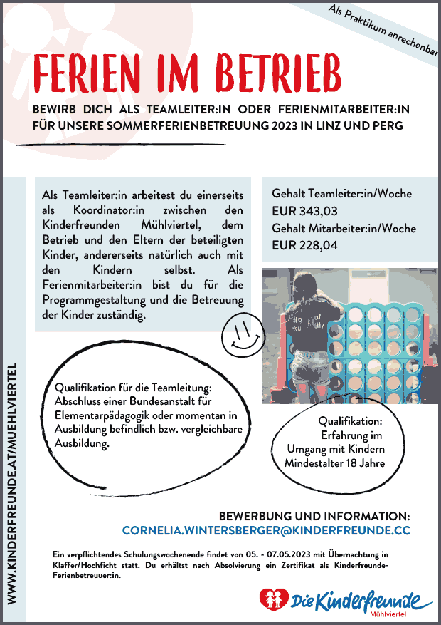 FERIEN IM BETRIEB TEAMLEITER:IN ODER FERIENMITARBEITER:IN FÜR UNSERE SOMMERFERIENBETREUUNG 2023 IN LINZ UND PERG