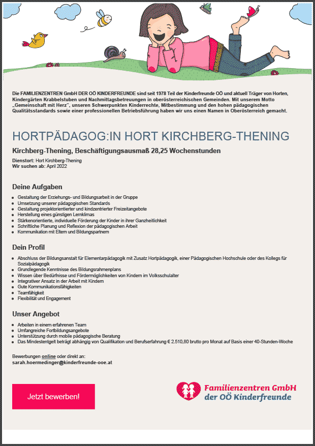 Hort Ansfelden, 6,5 Wochenstunden