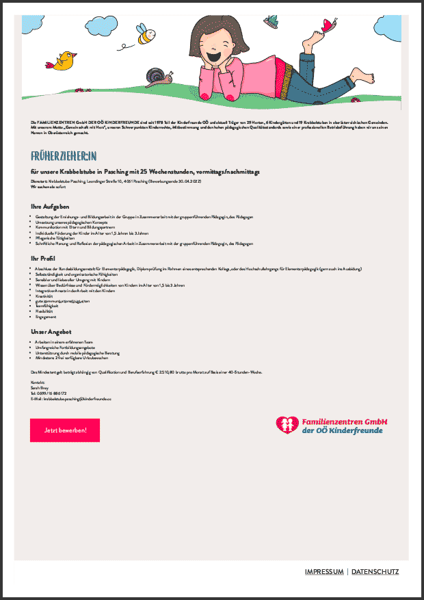 für unsere Krabbelstube in Pasching mit 25 Wochenstunden
