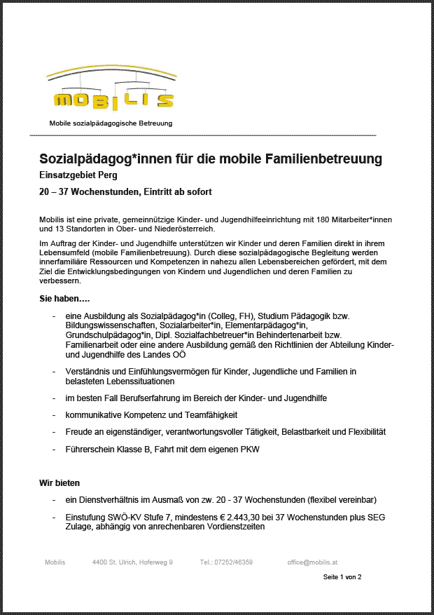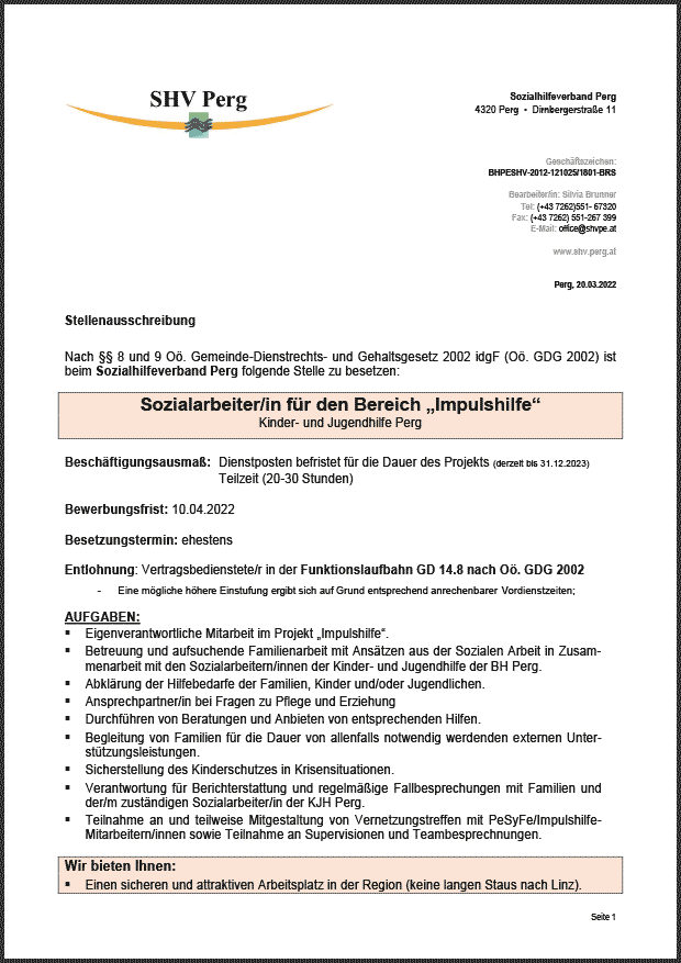 Kinder- und Jugendhilfe Perg, 20-30 Stunden