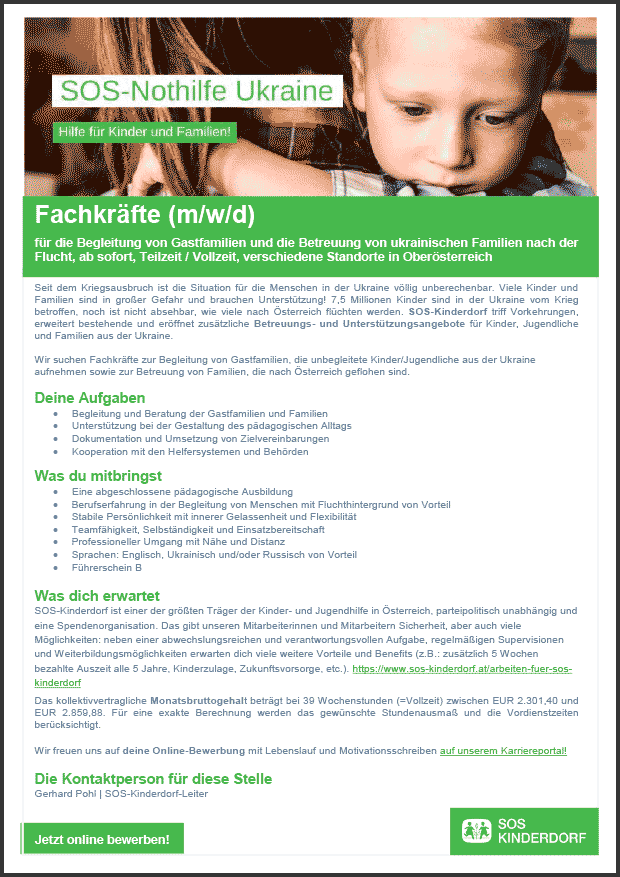 für die Begleitung von Gastfamilien und die Betreuung von ukrainischen Familien