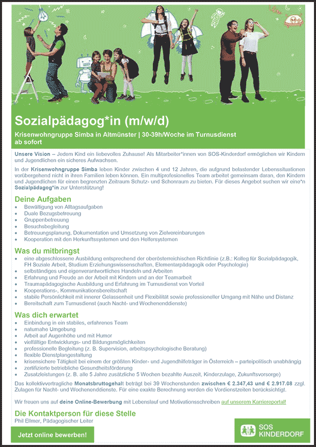 SOS-Kinderdorf Altmünster, 30h/Woche