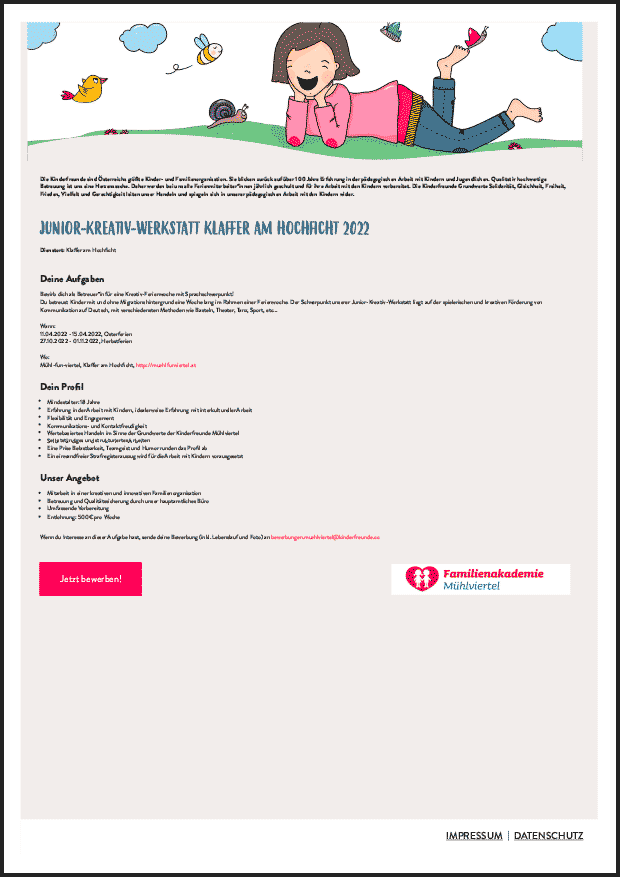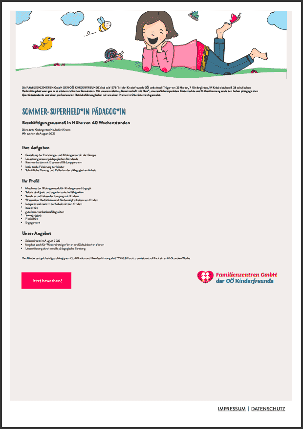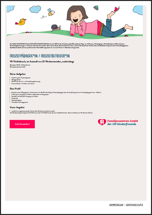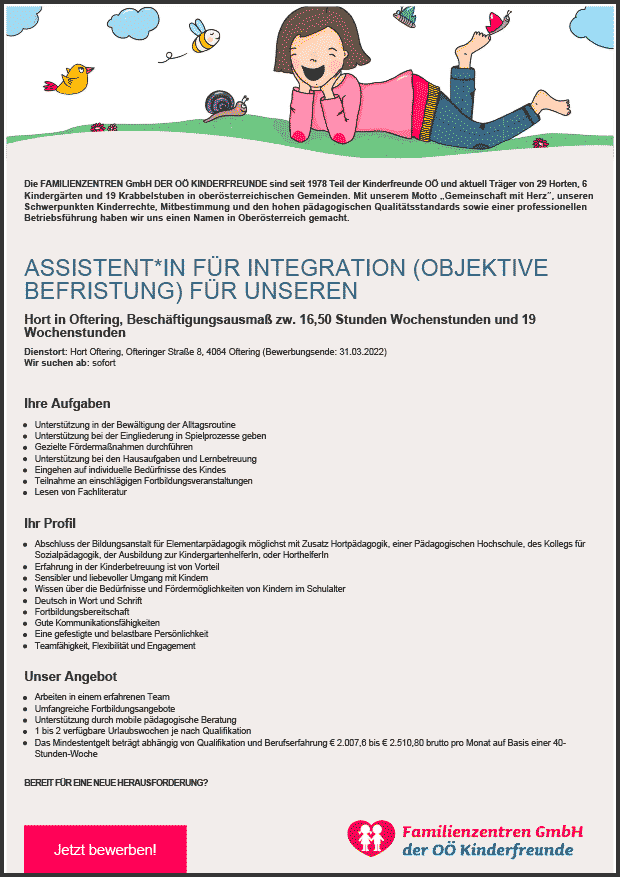 ASSISTENT*IN FÜR INTEGRATION (OBJEKTIVE BEFRISTUNG) Hort Oftering, zw. 16,50 Stunden Wochenstunden und 19 Wochenstunden