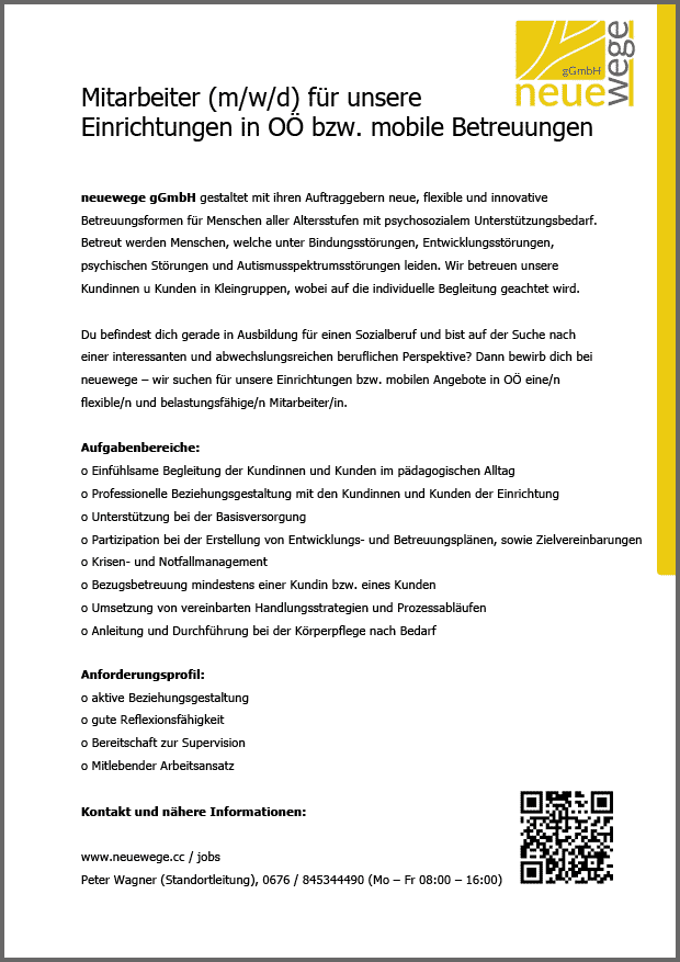 UMF-WG „Auswärts daheim“ in Linz | 10h/Woche