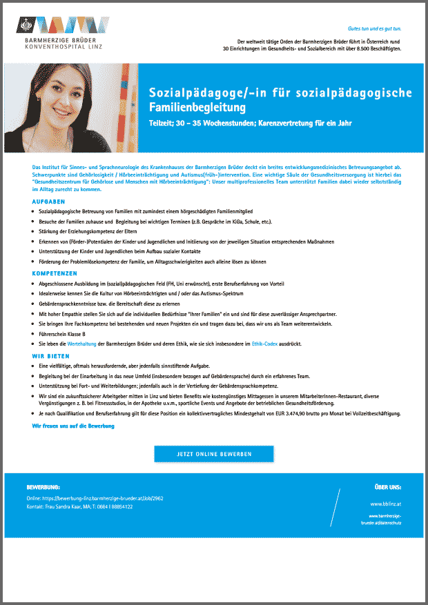 Sozialpädagoge/-in für sozialpädagogische Familienbegleitung