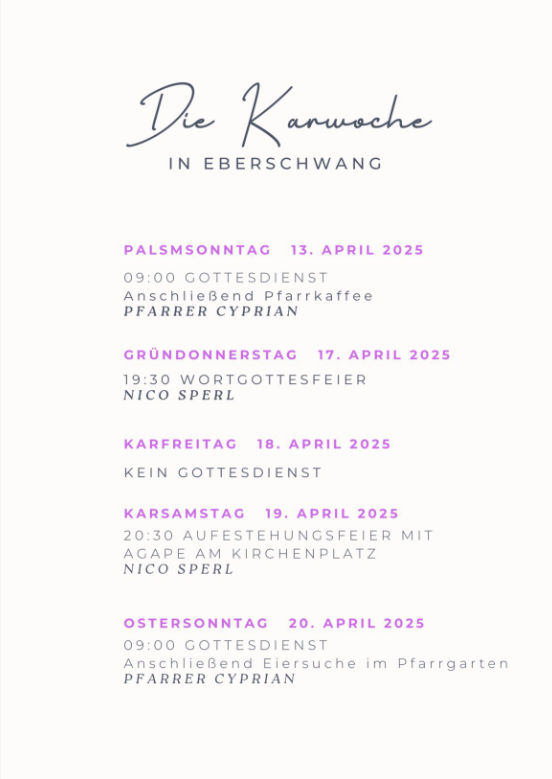 Wir laden ein, die Gottesdienste in der Karwoche und die Osterfeiertage zu besuchen.