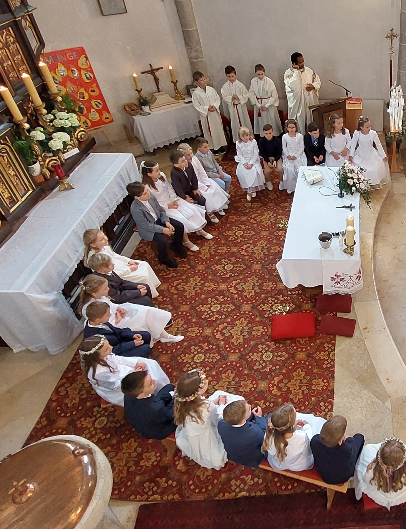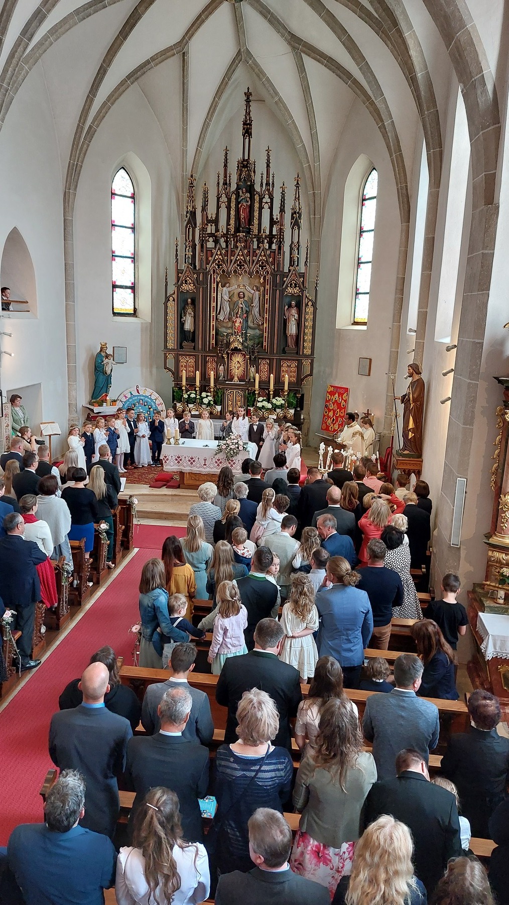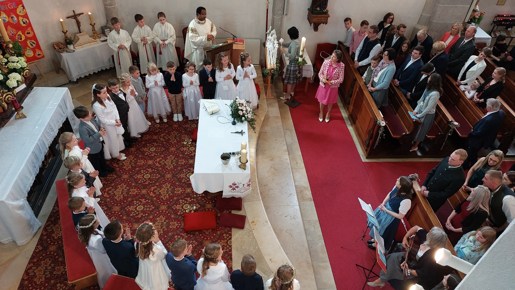 Die Erstkommunionkinder beschäftigten sich heuer mit dem Thema „zum guten Hirten“. Dabei wurden die 22 Kinder von einigen Eltern bei den Tischmutterstunden unterstützt. Es wurden Kerzen verziert, Brot gebacken, über das letzte Abendmahl und die Taufe gesprochen und vieles mehr. Bedanken möchten wir uns bei Religionslehrerin Maria Heller, Klassenlehrerin Franziska Wallner und allen Lehrerinnen der Volksschule. Besonders bedanken wir uns auch bei Philipp Struß für die Weggottesdienste, die sehr interessant gewesen sind.