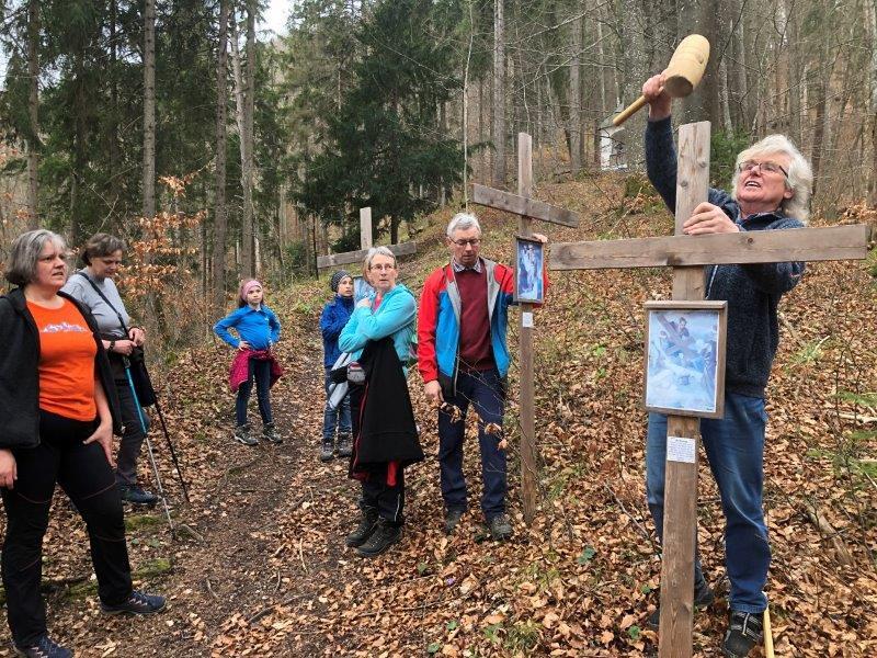 Bei jeder Station wird zunächst ein Kreuz eingeschlagen.